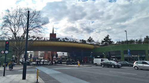 His excitement became reality. Today the bridge has trees and grass growing on top. It has created a crossing for cyclists and pedestrians over a busy road and a link to both sides of Mile End Park.
